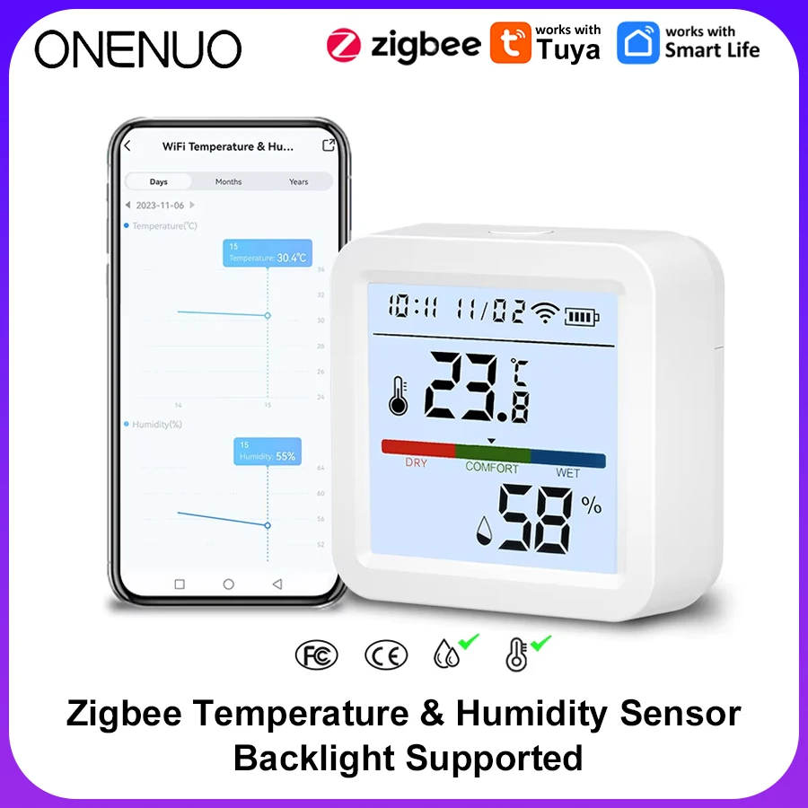 Tuya 와이파이 온도 습도 스마트 센서, 백라이트 포함, 스마트 홈 Var SmartLife, Alexa Google Assistant와 함께 작동