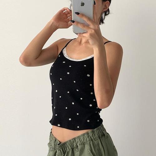 [신상오픈런]여성 레이스 크롭 슬리브리스 탑 꽃무늬 디자인 (39079709)