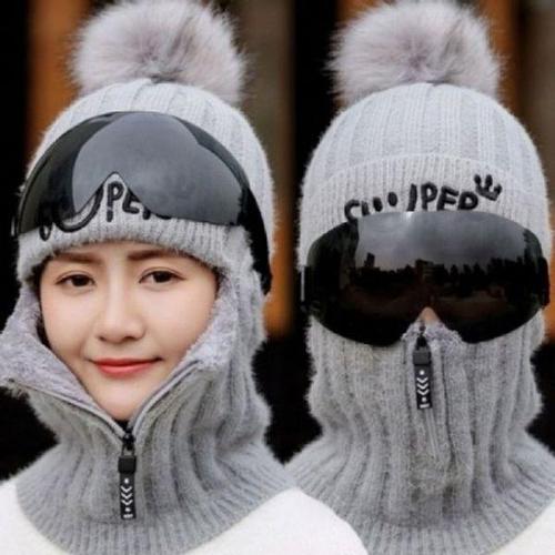 비안 방한 방풍 기모 고글 바라클라바, 블랙, 1개