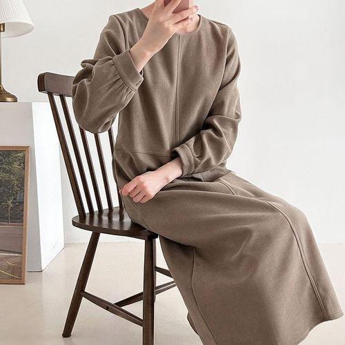 [신상오픈런]여자 가을 속기모 빅사이즈 절개 심플 등원룩 롱원피스