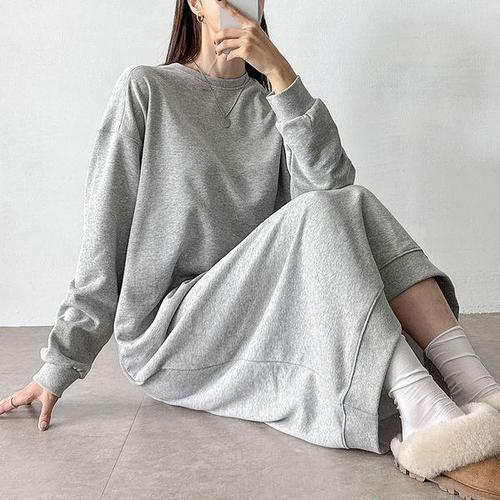 [신상오픈런]여자 휘뚜루 등원룩 맨투맨 일자핏 박시 롱원피스