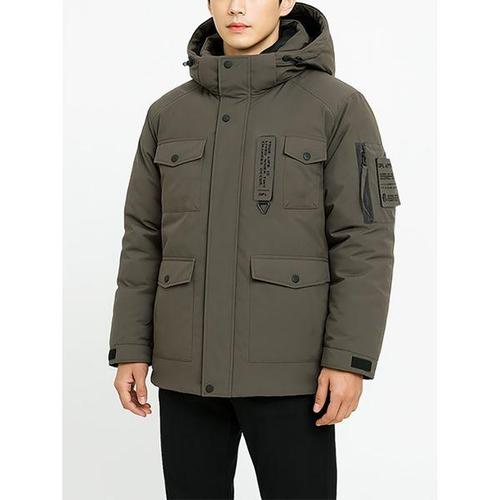 [디바옴므]후드 탈부착 멀티포켓 하프 패딩 점퍼 야상 중량 헤비 사파리