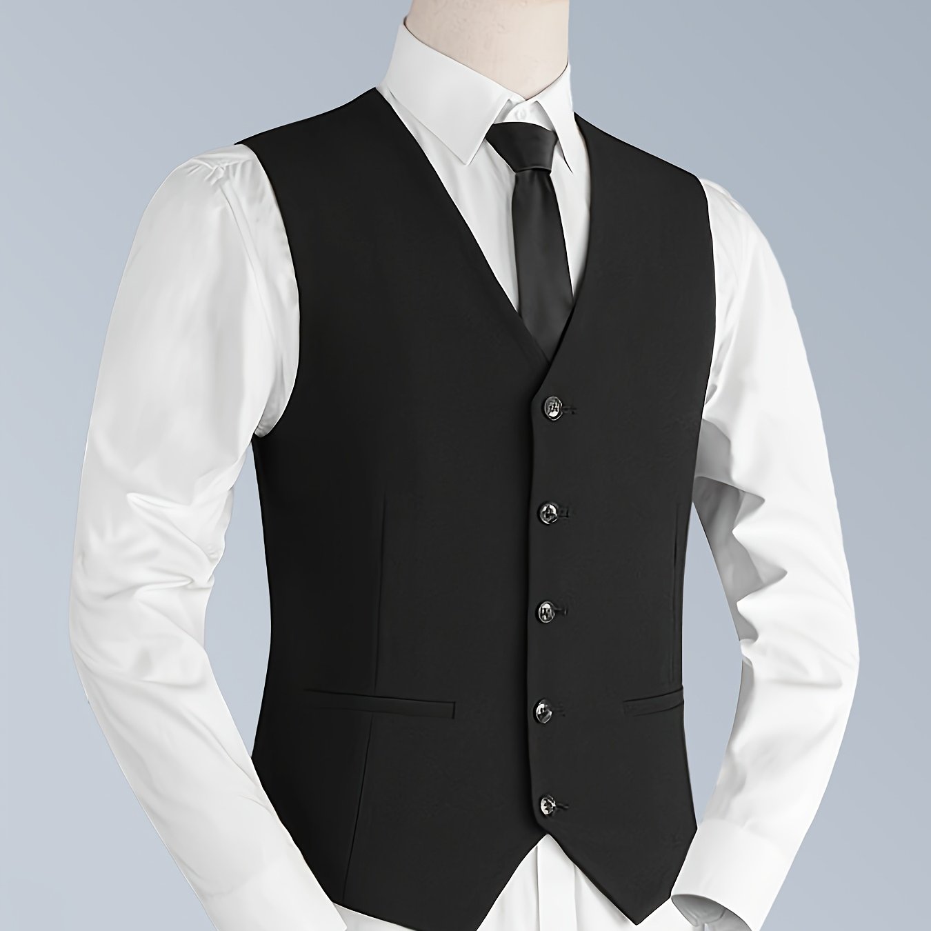 TEMU V 넥 스마트 정장 조끼, 남성 캐주얼 복고풍 스타일 단색 컬러 싱글 브레스트 양복 조끼 저녁 정장 경기