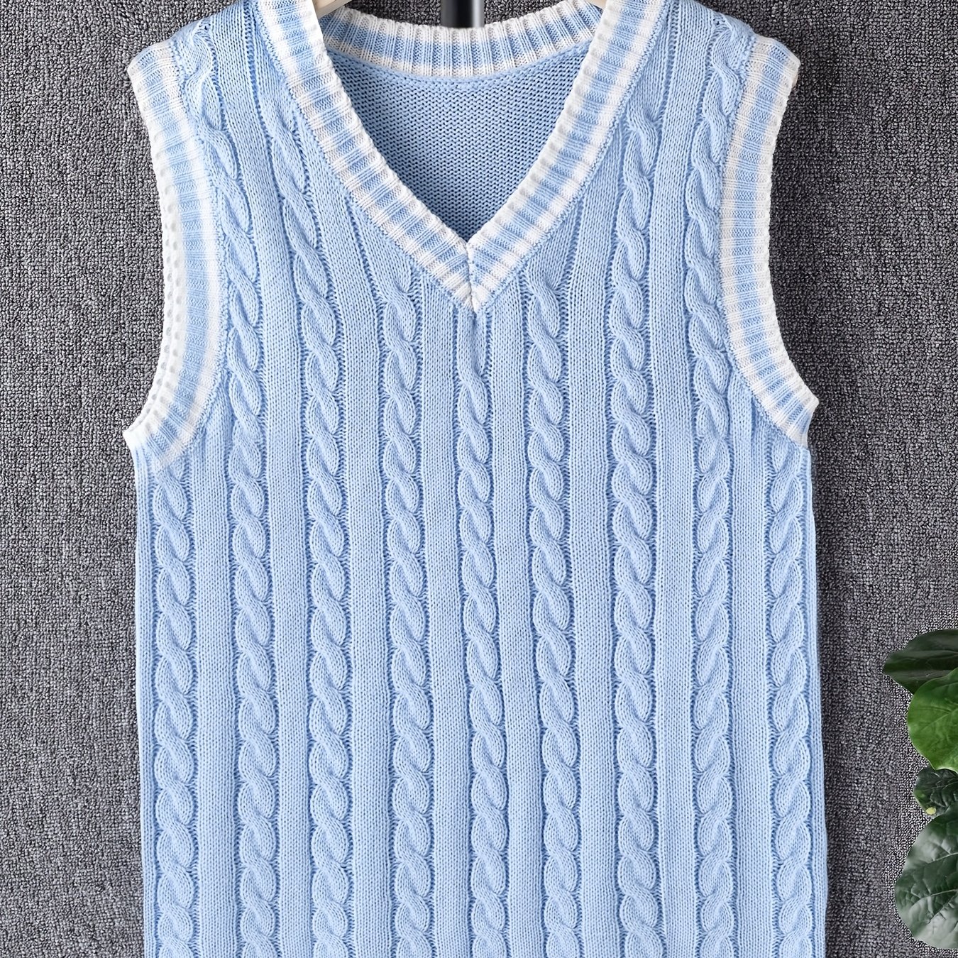 2장세트 남녀공용 꽈배기 라운드넥 니트조끼 (TBS_1034)