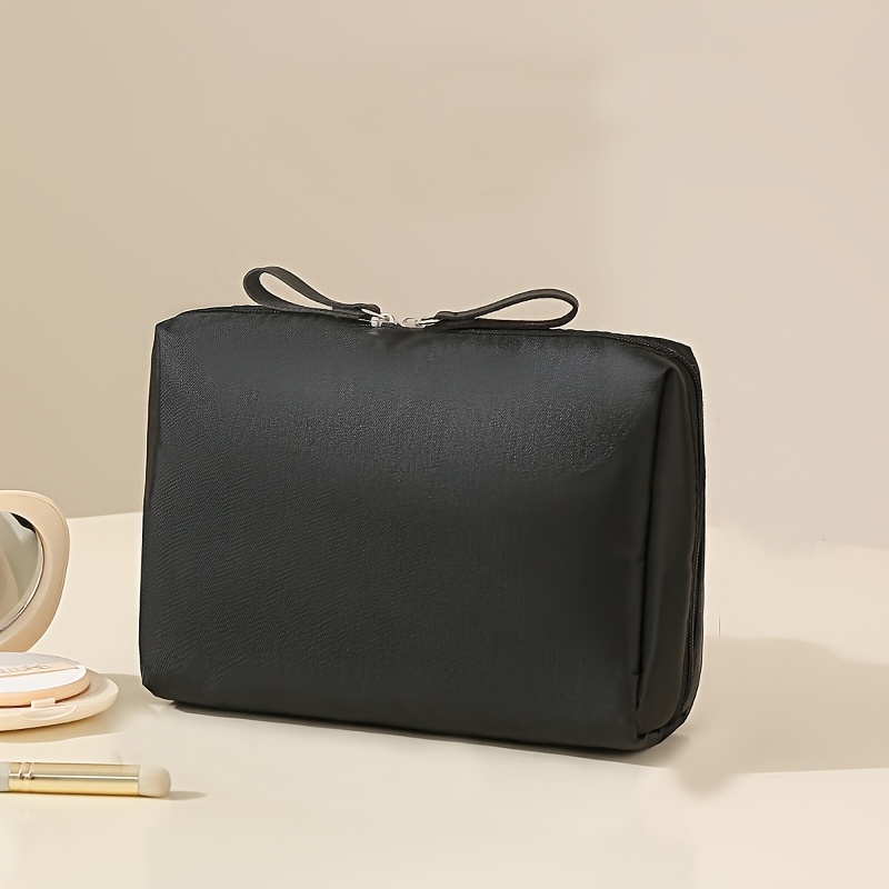 TEMU 지퍼가 있는 컴팩트 메이크업 정리 가방 - 립스틱, 브러시, 및 필수품을 위한 베이지 여행용 화장품 포켓, 일상적인 외출, 여행 메이크업 가방에 편리하고 휴대 가능합니다.