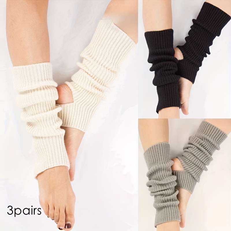 TEMU 여성용 리브 레그 워머 3켤레 - Y2K 하라주쿠 스타일, 발레, 피겨 스케이팅, 요가용 보온성 - 블랙, 화이트, 그레이 워머 (탄력 있는 오프닝) | 댄스 스케이팅 연습용 보온 장비
