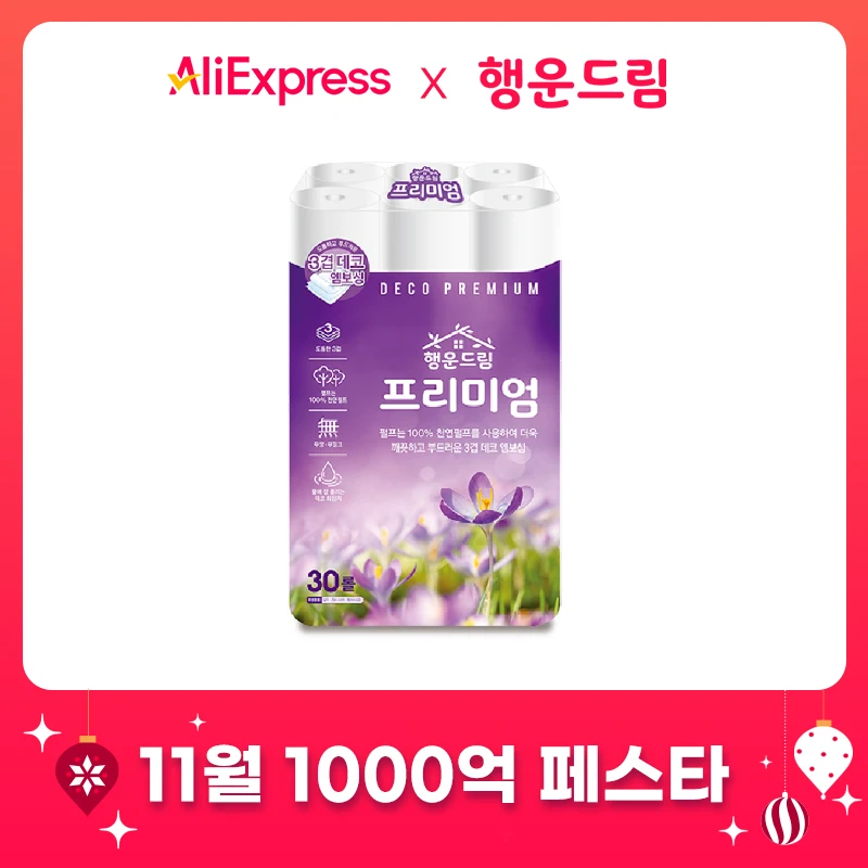 [천연펄프] 행운드림 프리미엄 3겹 30m 30롤 화장지 휴지 비데겸용 두루마리