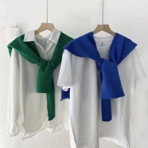 [에이치플러스몰]캐주얼 단색 뜨개탑 어깨숄니트집업 10color