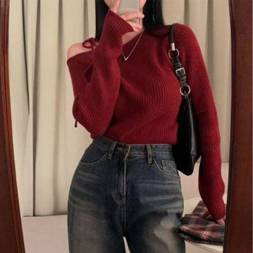 [에이치플러스몰]페미닌무드 원숄더보우 뜨개탑 유니크
