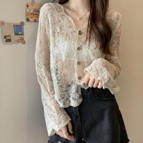 [신상오픈런]여성 브이넥 레이스 트임 뜨개 가디건 에스닉 디자인 (41315533)