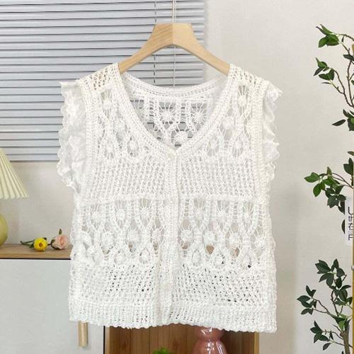 [셀럽하우스]여성 PVMT8889 봄 크로셰 여름 조끼 베스트 뜨개 데일리 가디건