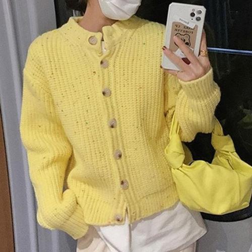 해피유통 여성 가을겨울 니트 가디건 붉은색 기본 디자인 버튼 오픈 스타일 루즈핏