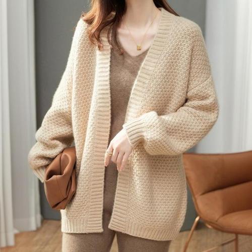 [신상오픈런]여성 독특한 짜임 뜨개 브이넥 롱슬리브 가디건 (38168409)