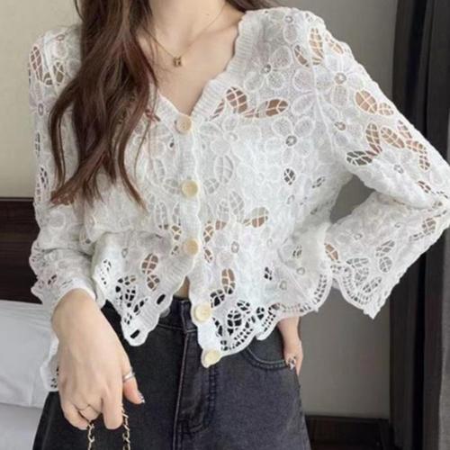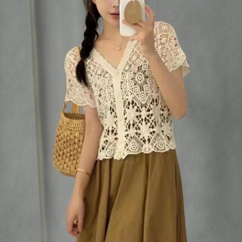 [신상오픈런]여성 브이넥 니트 가디건 에스닉 스타일 뜨개 크로셰 (41315534)