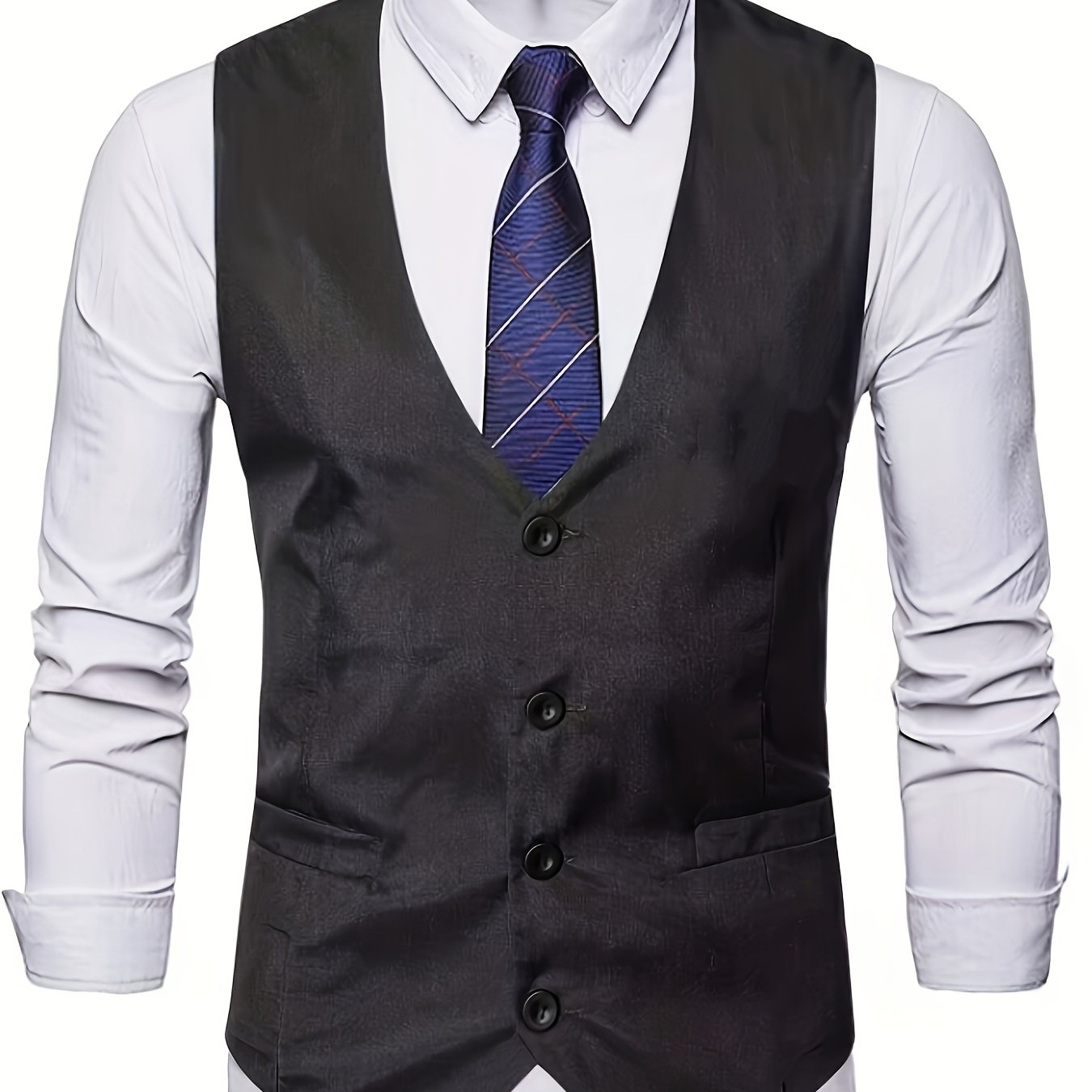 TEMU V 넥 스마트 정장 조끼, 남성 캐주얼 복고풍 스타일 단색 컬러 싱글 브레스트 양복 조끼 저녁 정장 경기