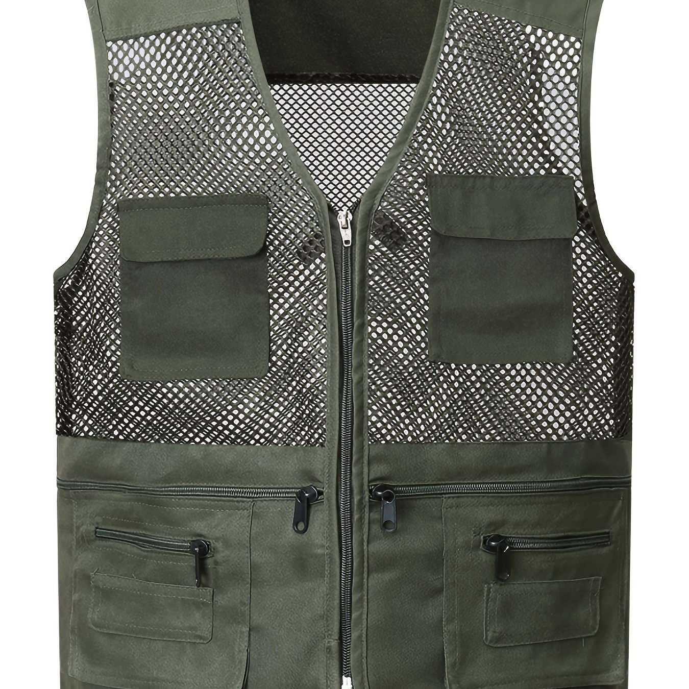 TEMU 남성용 할로우 아웃 통기성 조끼 | 캐주얼 V넥, 신축성 없는 원단, 단색, 여름 시즌, 다용도 포켓 작업 조끼 (야외 활동용)