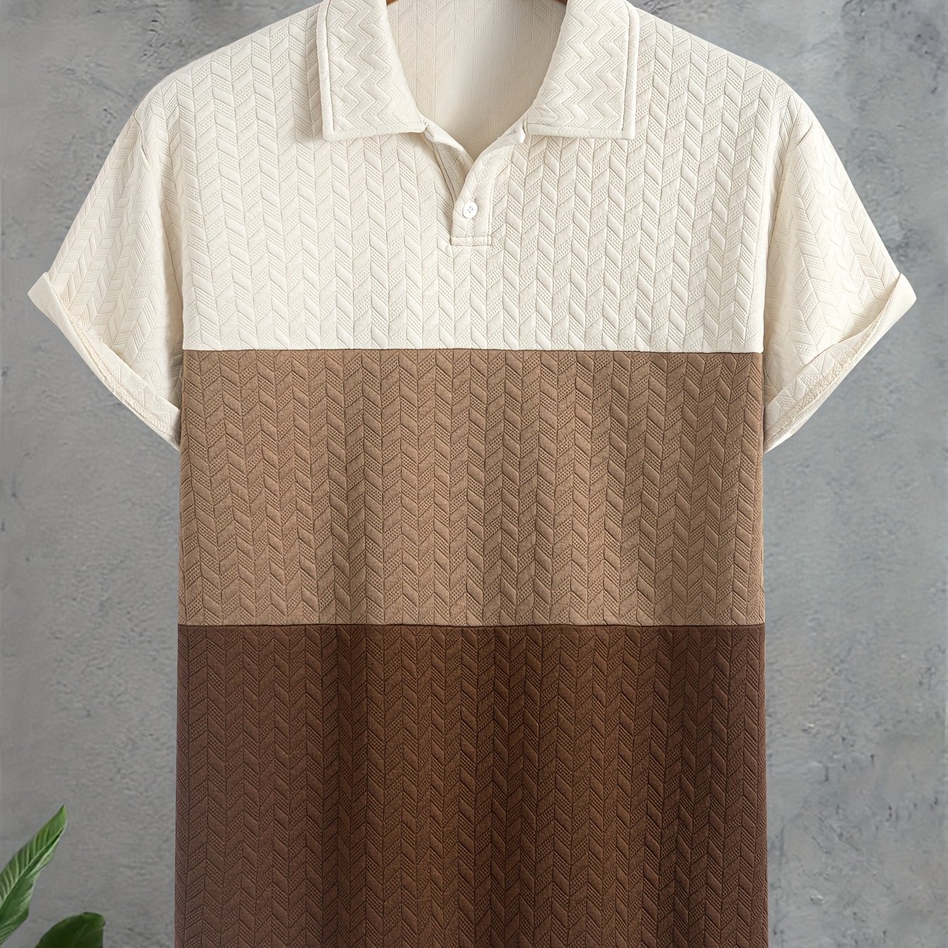 TEMU 남성용 여름 캐주얼 셔츠 - 컬러 블록 디자인과 대비 칼라, 부드럽고 통기성 좋은 니트 소재, 반팔 버튼업 레귤러 핏 티셔츠, 편안한 착용감, 주말룩, 가벼운 소재, 스타일리시한 남성복