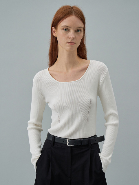 [라메레이] 스쿱넥 슬림 긴팔 니트