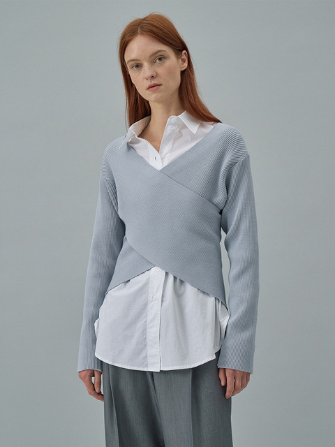 [라메레이] 랩골지 브이넥 니트_펄블루