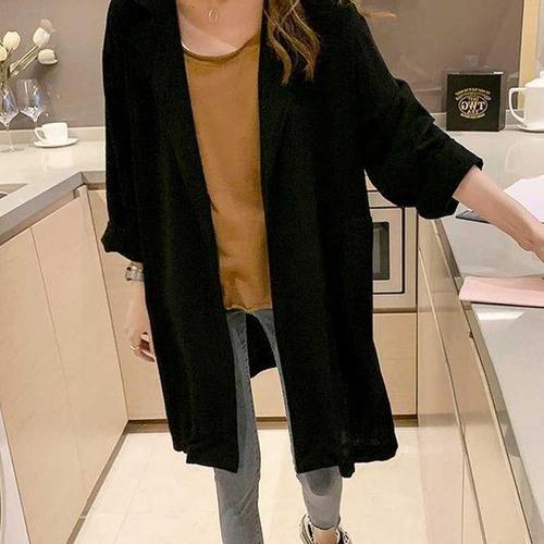 [에이치플러스몰]가벼운 여성 린넨 롱자켓 세련된 카라 긴팔
