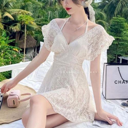 [에이치플러스몰]프리사이즈 슬림 레이스 원피스 수영복 여행 ?슈트