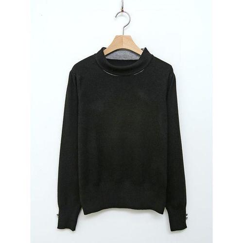 [샵앤][샵앤] 여성 진주 라운드넥 퍼프소매 여름 반팔 니트티 BONG-WKN-4493-블랙