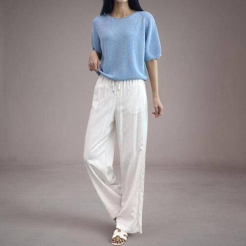 [신상오픈런]여성 여름 린넨 무지컬러 짜임 라운드넥 반팔 니트 (38169683)