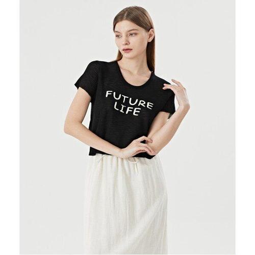 [모노무드]모노무드 여자 3컬러 라운드넥 세미크롭 여름 영문레터링 캐주