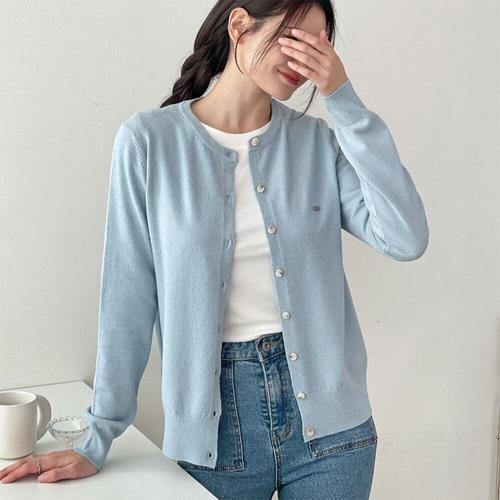 [미라클세븐]여성용 봄철 데일리 패션 펜던트 라운드넥 기본 니트 가디건