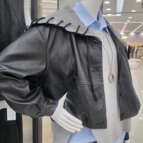 [옷자락]여자 폴리 뽀글이안감 세미크롭 레더 점퍼