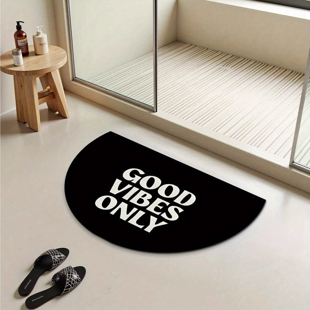 TEMU 가을 테마 "GOOD VIBES ONLY" 프린팅 도어매트, 부드러운 플란넬 웰컴 매트, 미끄럼 방지 뒷면. 세탁기 사용 가능하고 접이식 야외 러그, 내구성 있는 폴리에스터 제작. 욕실, 주방, 거실, 침실 또는 야외 사용에 적합. 홈 데코 및 휴일 장식 선물. 12-149