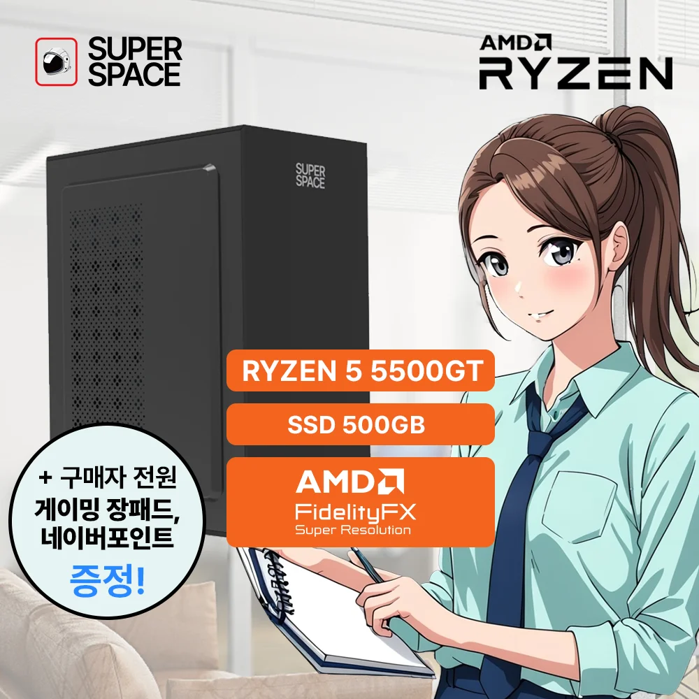 정품제품 사용 라이젠5 5500GT_16GB_500GB 슈퍼스페이스 조립PC 컴퓨터본체 주식용,사무용,가정용 컴퓨터