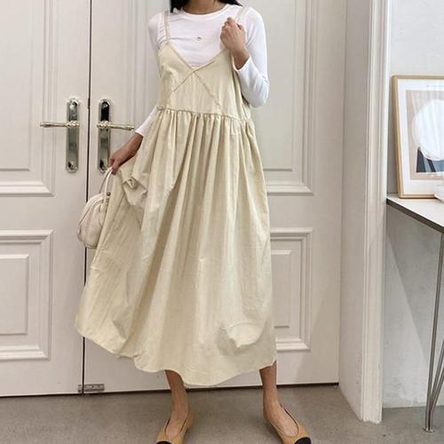 [디작소]심플 레이어드 뷔스티에 여름 A라인 롱원피스 (39781150)