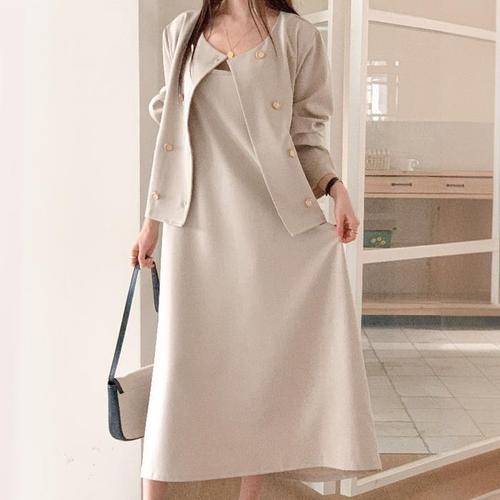 [신상오픈런]금장단추 라운드넥자켓 뷔스티에원피스 에이라인 셋업 (30668711)