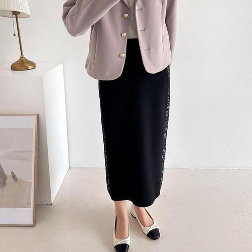 [신상오픈런]레이스스커트 일자 h라인 백슬릿 봄 정장치마 (30202057)