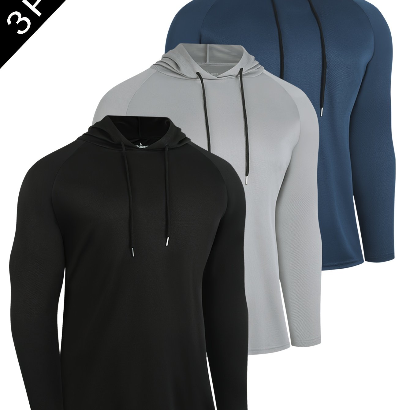 TEMU 3개 세트 남성용 폴리에스터 후드 스웨트셔츠, 운동 및 캐주얼 웨어에 적합한 솔리드 컬러 니트 소재, 가을과 겨울철 완벽한 체육관 의류, 내구성 강화 디자인, 다목적 활동복
