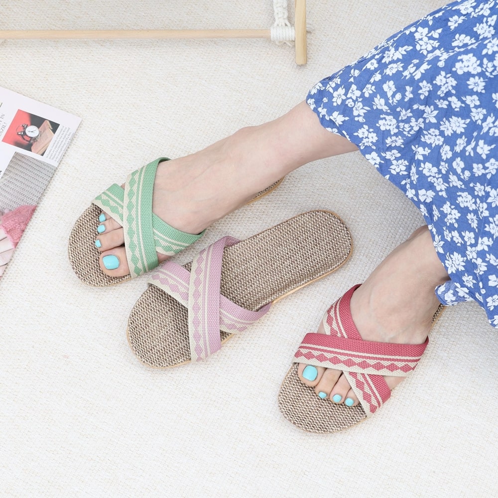 린넨텍스처서머시즌 라탄디자인 모던 홈슬리퍼 근무공간 슬리퍼 거실화(특가)