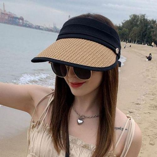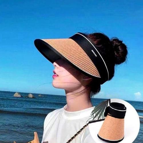 여성 여름 UV 차단 밀집 라탄 돌돌이 썬캡 모자 밀집모자 자외선차단모자 돌돌이모자 여성썬캡 여성여름모자