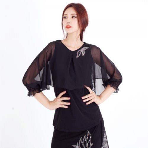 [셀럽하우스]LDT11500 FPOU3008 어깨 날개 꽃잎티 숙 여성 성능 라틴댄스 소