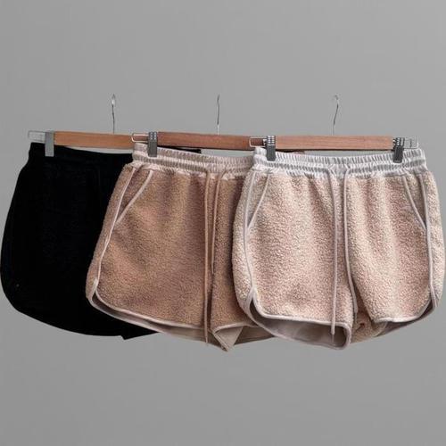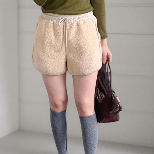 [신상오픈런]여성 랍빠 뽀글이 배색 겨울 숏팬츠 밴딩 3부 반바지 (44012328)