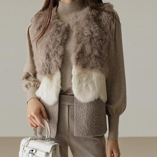 [스타일온미][스타일온미] 스칼럽 라인 배색 래빗 퍼 베스트