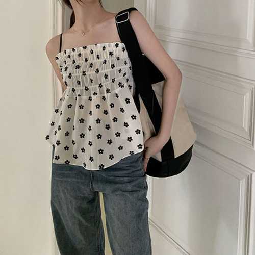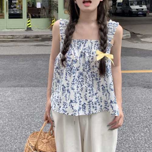슈팅스타 / 플로럴 플라워패턴 크롭 나시 조끼 베스트 14726
