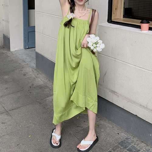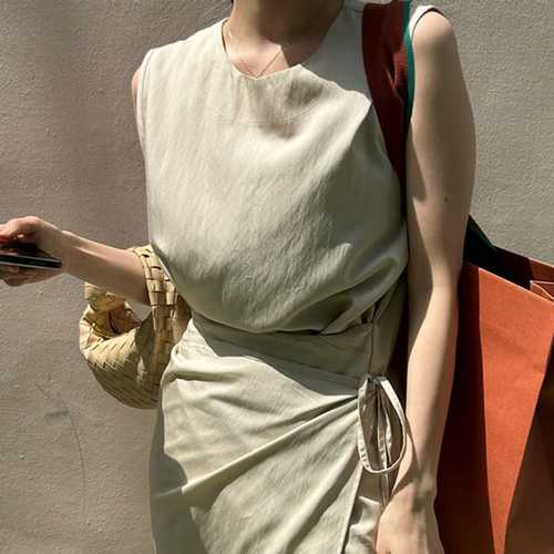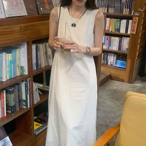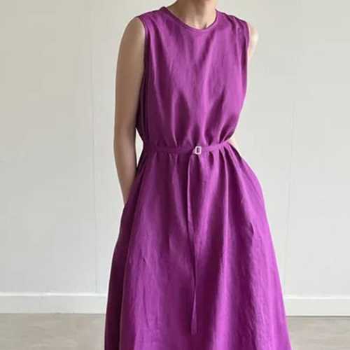 슈팅스타 / 빠른출고 나시 심플 허리 벨트 롱 린넨 원피스 225440