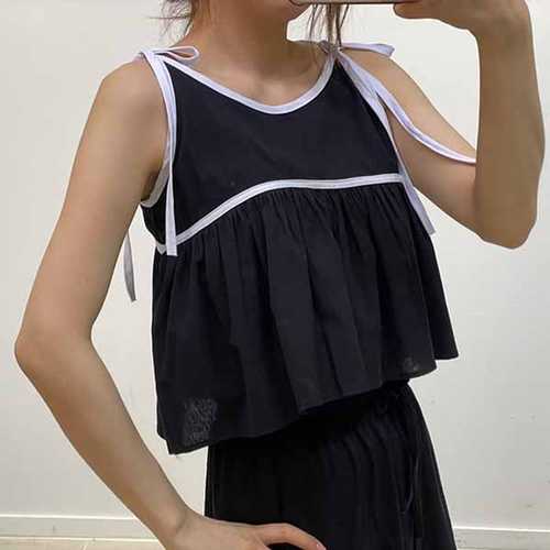슈팅스타 / 주름 심플 디자인 슬리프 플라잉 숄더 나시 921635