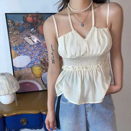슈팅스타 / 오프 숄더 프릴 홀더넥 슬림 나시 탑 965142