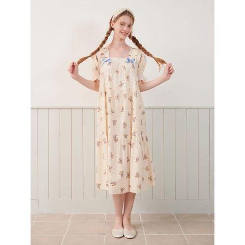 [쿠비카]귀여운 곰돌이 반팔 원피스 여성잠옷 W300