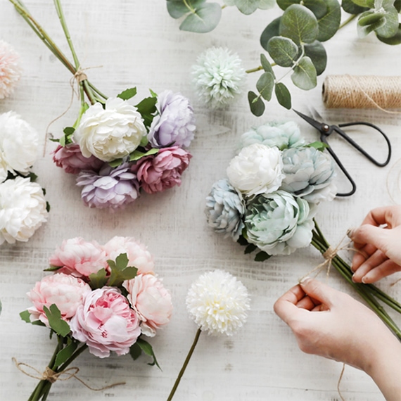 미뇽 파스텔 작약 인테리어 조화 퐁퐁 작약꽃 실크 라넌큘러스 이벤트 웨딩 돌잔치 작약