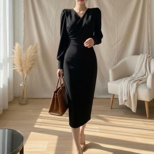 [다잇템][다잇템] 여성 벌룬소매 출근룩 들러리 랩 슬림핏 원피스_24342085_588872