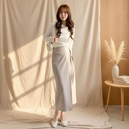 [다잇템]여성 백밴딩 랩 일상용 슬릿 롱스커트