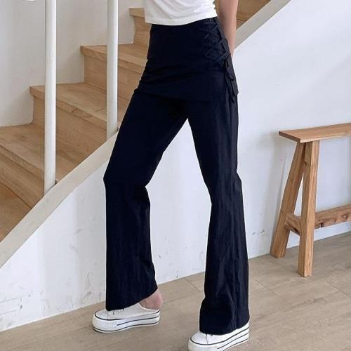 [옷자락]여성 면혼합 스판 페이크포켓 랩 스타일 버튼 치마바지